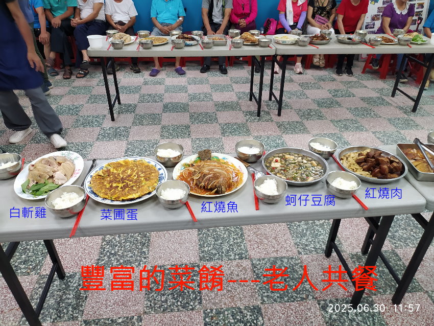 今午新北市三峽區溪北里長林清明,辦理每月一次老人共餐。社區主委表示,供餐除了 體恤老人,更能敦親睦鄰,也讓老人家相互認識,平時無聊當能閒槓串門子,這都有助老人們身心健康。